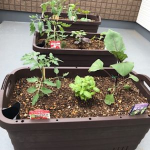 4月に植えた我が家の野菜の苗が、すくすくと成長し、プランターからはみ出してニョキニョキ伸びています‼