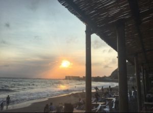 大好きな海の家からゆっくりと沈む夕日を見ていると