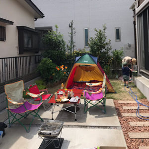 家族だけでおうちキャンプ?バーベキューをしたり、