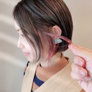 おろしていると見えづらいですが、耳にかけるとちらっとあらわれてポイントになります!