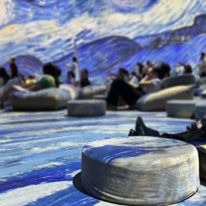 誰もが見たことのあるゴッホの向日葵や星月夜などの作品たちが現代のプロジェクションマッピングと融合し、壁や床に大きく投影され、更に絵の中の人物が動いたり立体になったり、まさに絵の中に入り込んだような「没入感」!